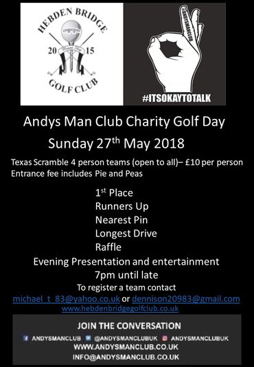 We will be holding a charity golf day in aid of Andys Man Club, a fantastic charity with the aim of reducing the number of suicides by men under 45 by half, for more information on what this fantastic charity does please check out their website